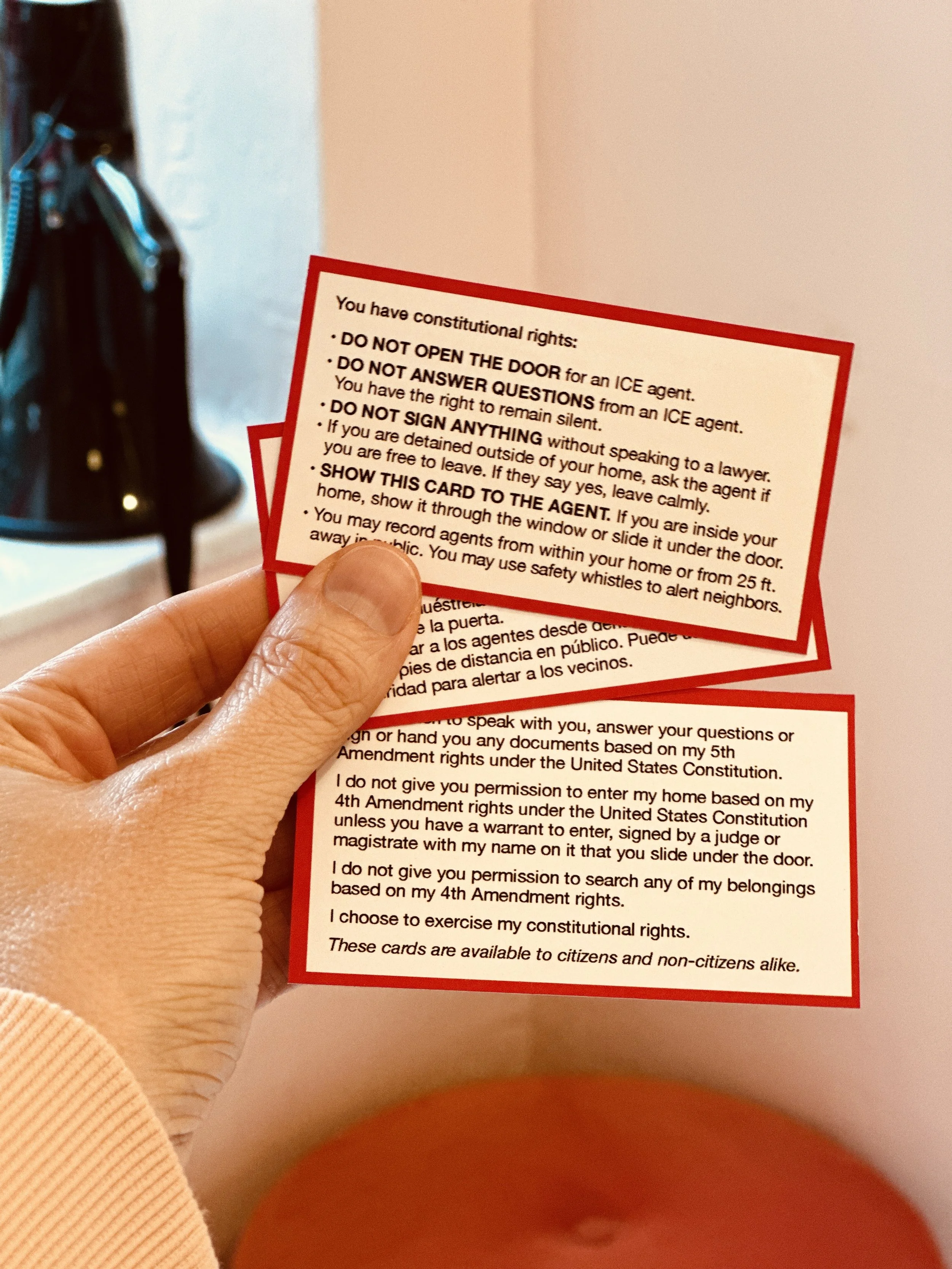 I’m handing these out in my Miami neighborhood so people know not to open the door for ICE. While we can’t stop them from violating our 4th Amendment rights, we can make ourselves and our neighbors aware. If you’d like to distribute these in your own neighborhood, or leave a stack somewhere public, print single-sided and fold each row to make a card or print double-sided and cut each card out.